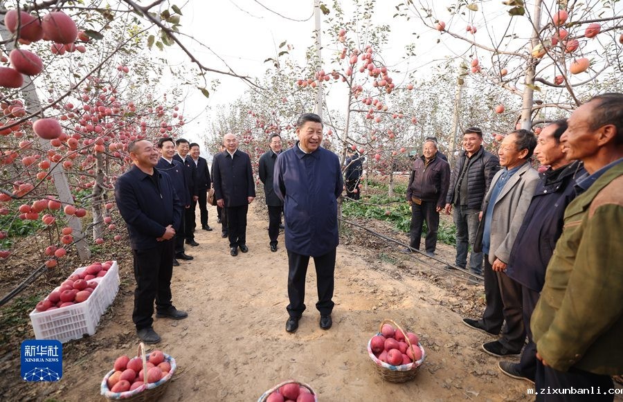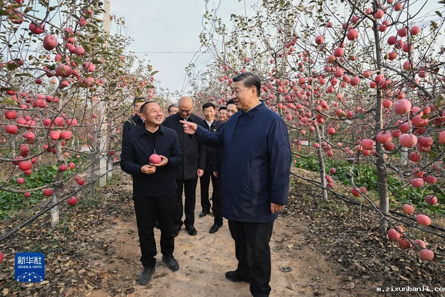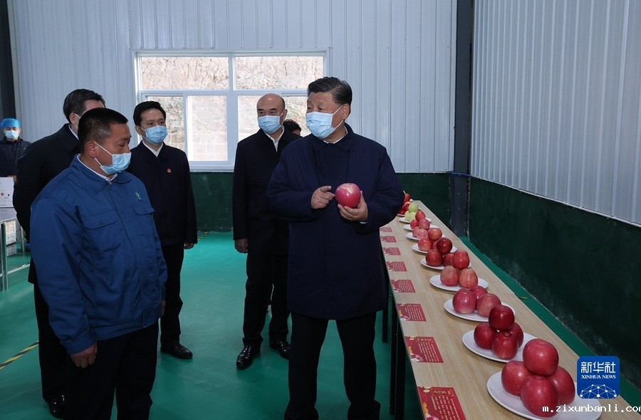 10月26日至28日,中共中央总书记、国家主席、中央军委主席习近平在陕西省延安市、河南省安阳市考察。这是26日下午,习近平在延安市安塞区高桥镇南沟村苹果洗选车间,察看当地种植的苹果。 新华社记者 鞠鹏 摄