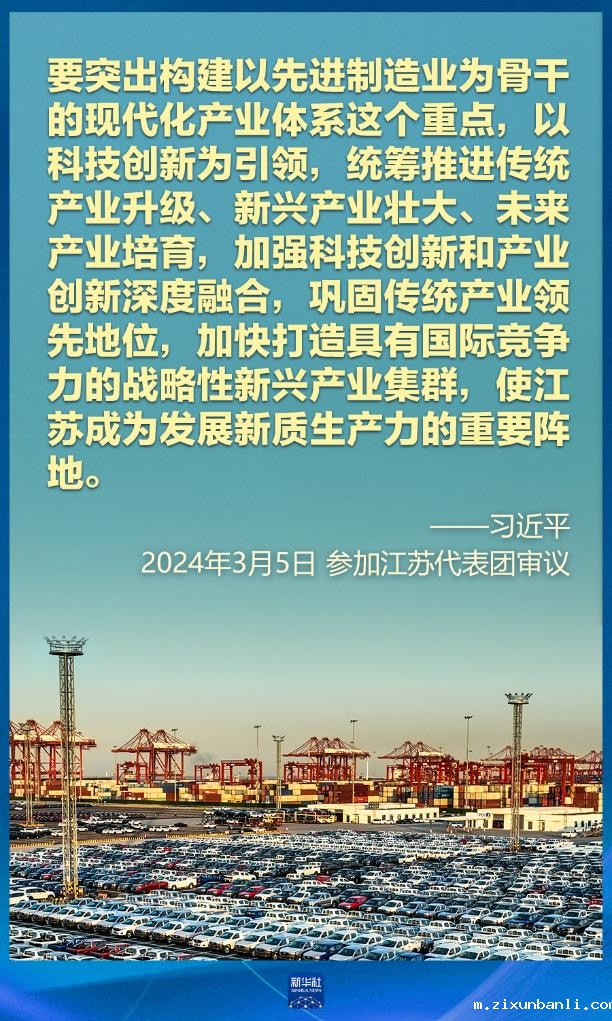 5日下午,习近平在参加他所在的十四届全国人大二次会议江苏代表团审议时强调,因地制宜发展新质生产力。