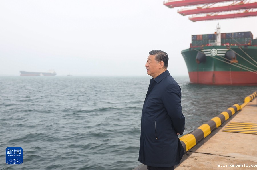 5月22日至24日,中共中央总书记、国家主席、中央军委主席习近平在山东考察。这是22日下午,习近平在日照港考察。 新华社记者 鞠鹏 摄