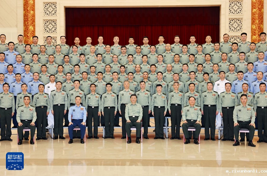5月23日上午,习近平在济南亲切接见驻济南部队上校以上领导干部,代表党中央和中央军委向驻济南部队全体官兵致以诚挚问候,并同大家合影留念。张又侠陪同接见。