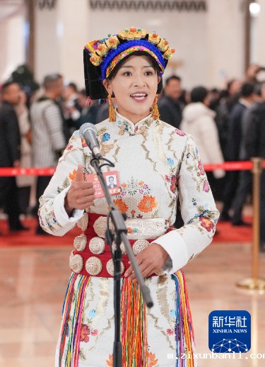 十四届全国人大三次会议首场“代表通道”集中采访活动于2025年3月5日8时在人民大会堂中央大厅北侧举行,邀请部分全国人大代表接受采访。全国人大代表,四川省马尔康市养护院院长格西王姆表示,作为一名人大代表,她将在本职岗位上用自己的爱心、耐心和责任心,为更多的老人带去幸福与安宁。