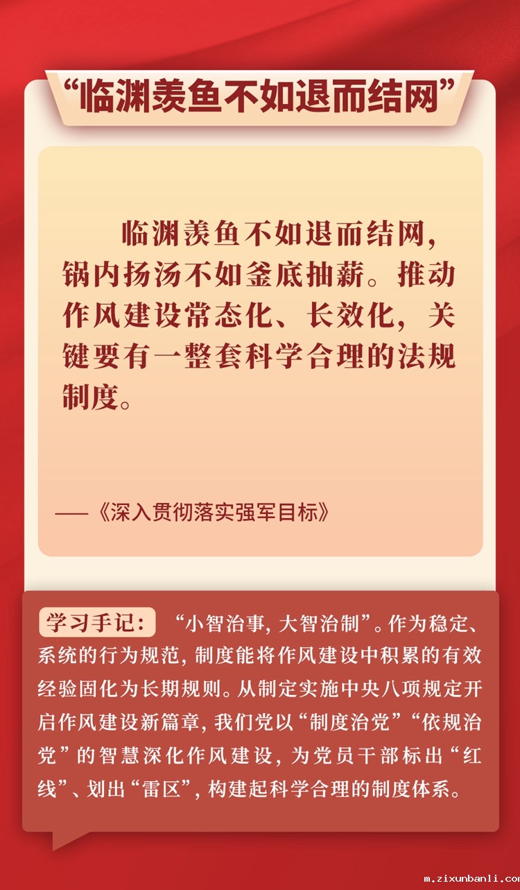 “问渠那得清如许?为有源头活水来。”关于作风建设,习近平总书记常引用各种古语典故,有的从警示层面讲危害,有的从倡导层面谈践行,旁征博引、画龙点睛,把古人智慧化用于作风建设的当代实践,给人以思想启迪、灵魂洗礼。