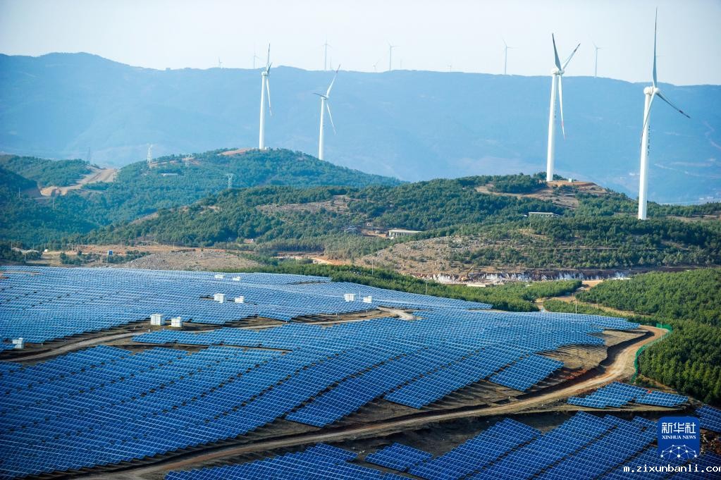 这是贵州省威宁县平箐光伏电站和大海子风电场(2018年3月13日摄)。 新华社记者 杨文斌 摄