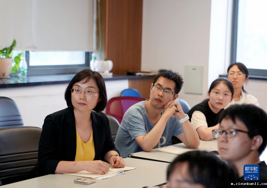 陈玲玲(左一)在中国科学院分子细胞科学卓越创新中心和学生们开会(2022年9月13日摄)。新华社记者 刘颖 摄