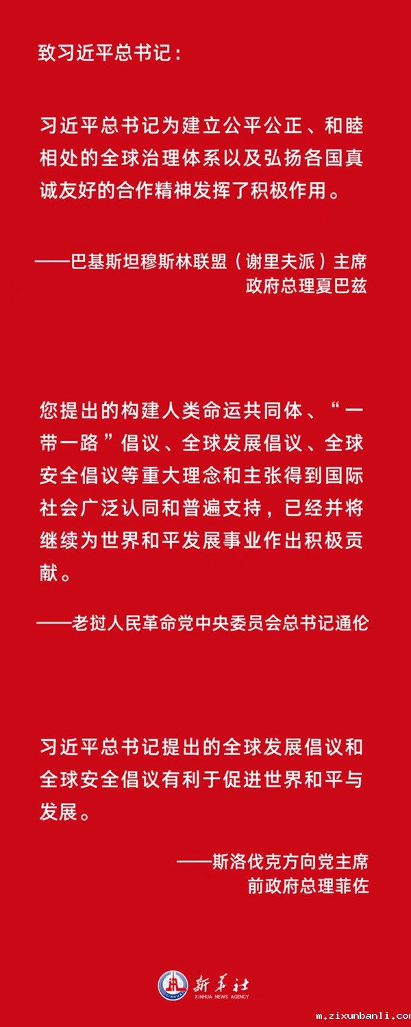 巴基斯坦穆斯林联盟(谢里夫派)主席、政府总理夏巴兹表示,习近平总书记为建立公平公正、和睦相处的全球治理体系以及弘扬各国真诚友好的合作精神发挥了积极作用。