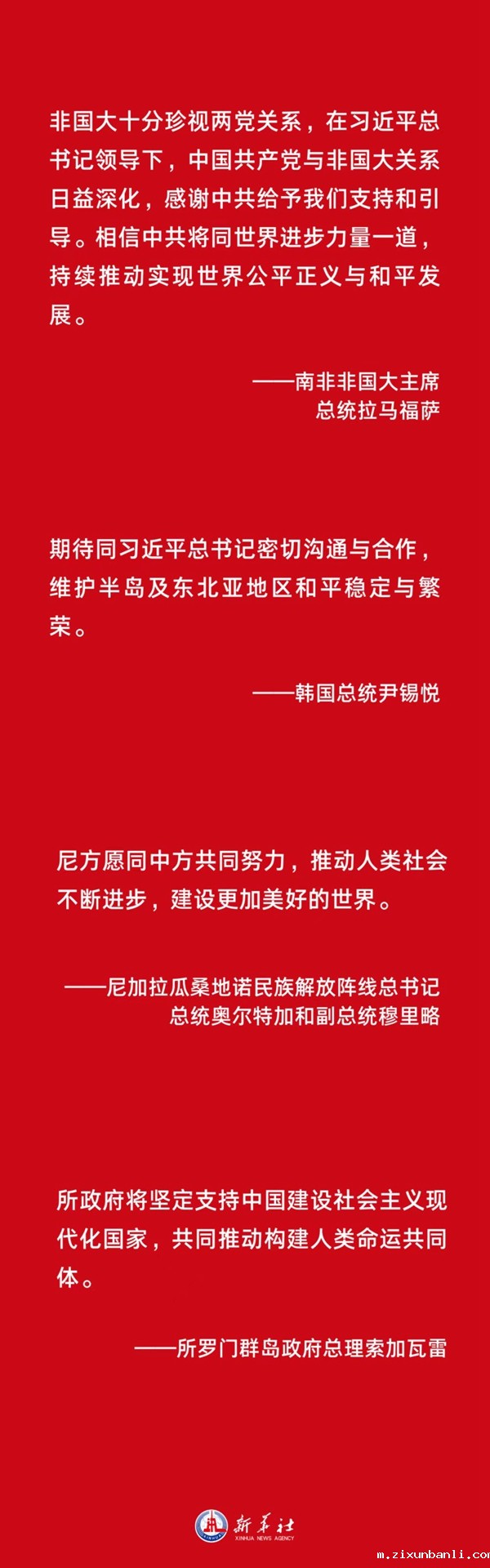 ——各国政党政要热烈祝贺习近平当选中共中央总书记和中共二十大成功举行