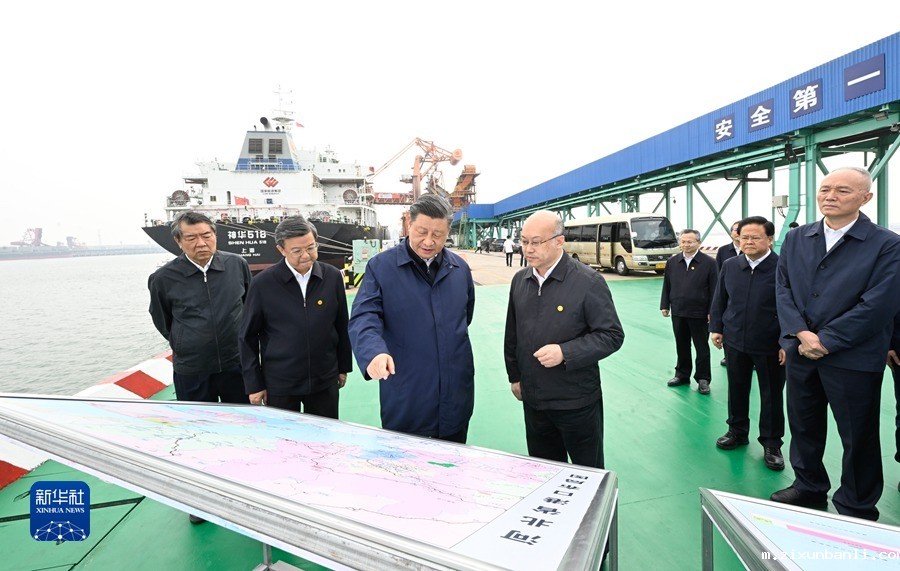 5月11日至12日,中共中央总书记、国家主席、中央军委主席习近平在河北考察,并主持召开深入推进京津冀协同发展座谈会。这是11日下午,习近平在沧州市黄骅港煤炭港区码头考察。新华社记者 李学仁 摄